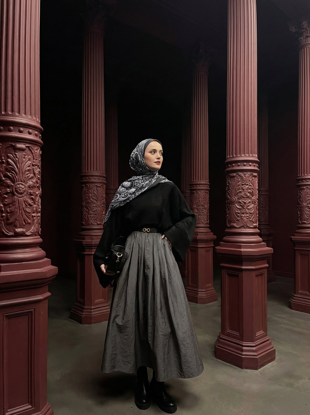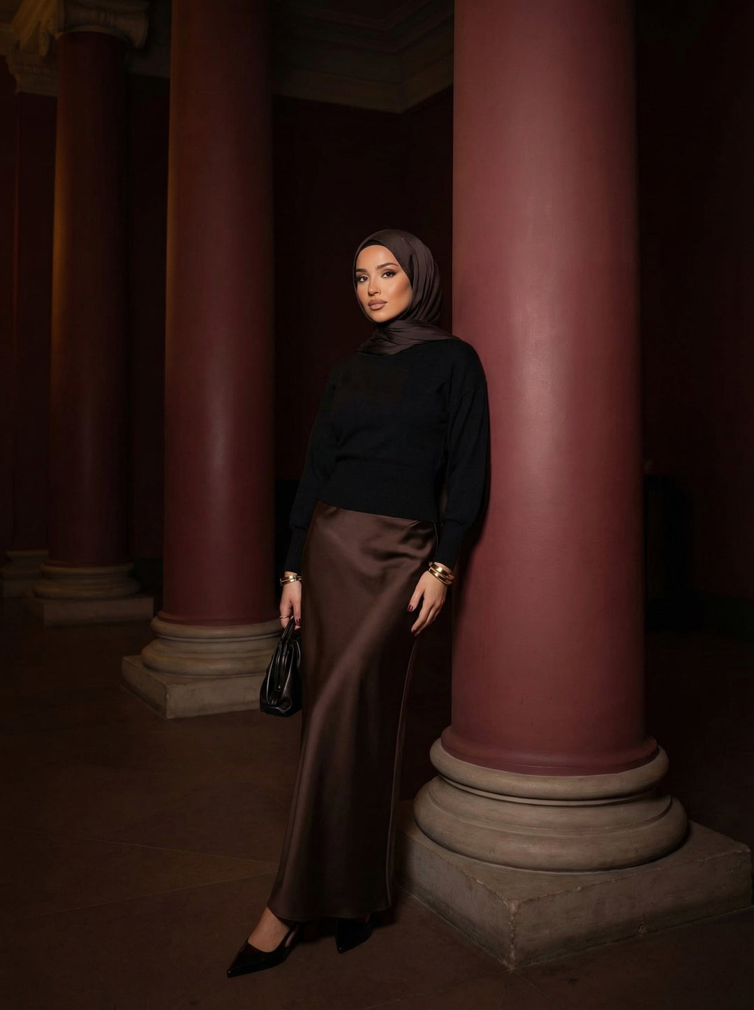 Noir Elegance Saten Tesettür Etek