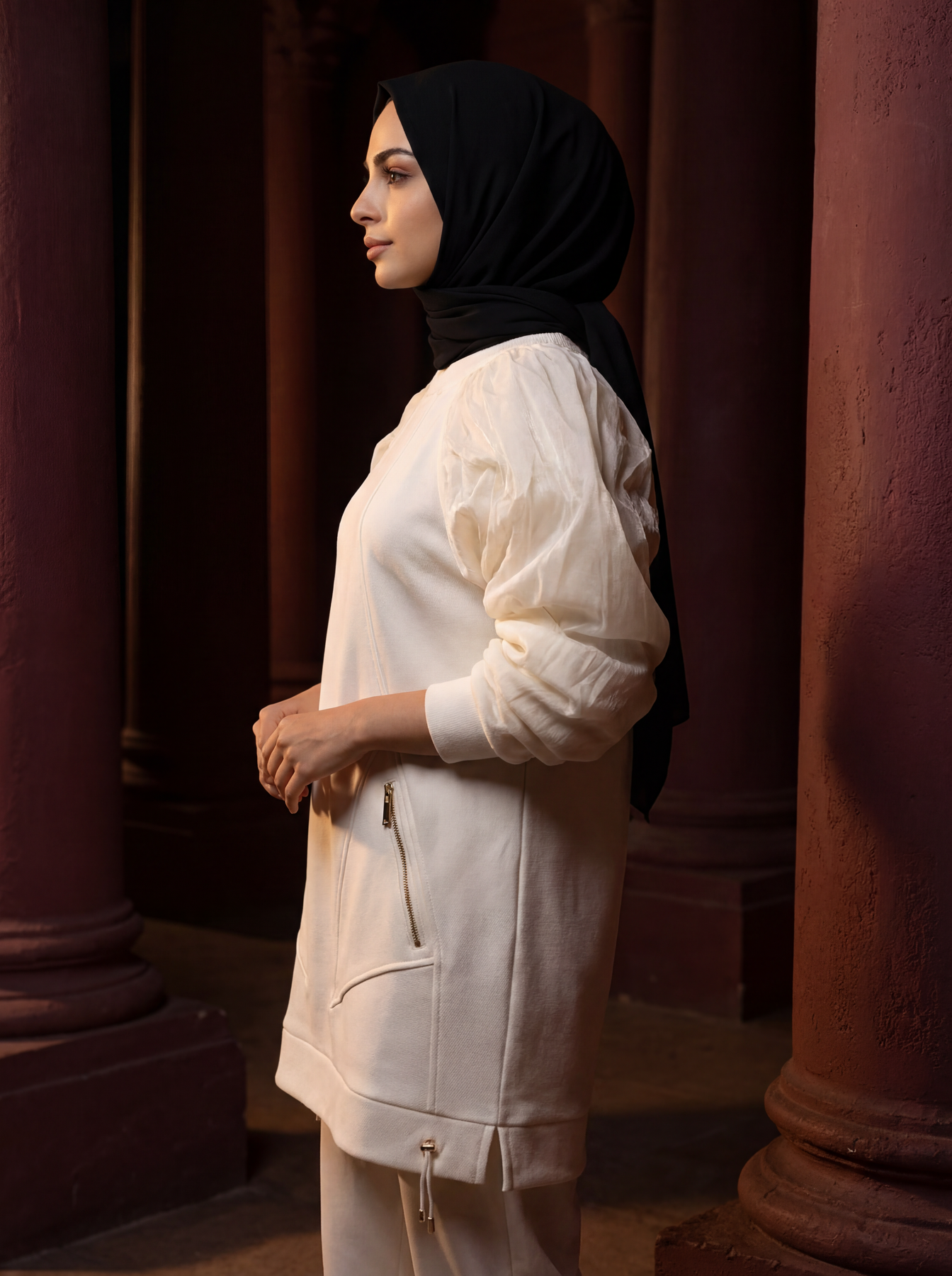 Zarafetin ve modern çizgilerin kusursuz birleşimi Ivory Vault, sofistike bir stil arayan kadınlar için tasarlandı. Yumuşak krem tonlarıyla ferah ve asil bir görünüm sunarken, hacimli kol detayıyla güçlü bir siluet oluşturur.