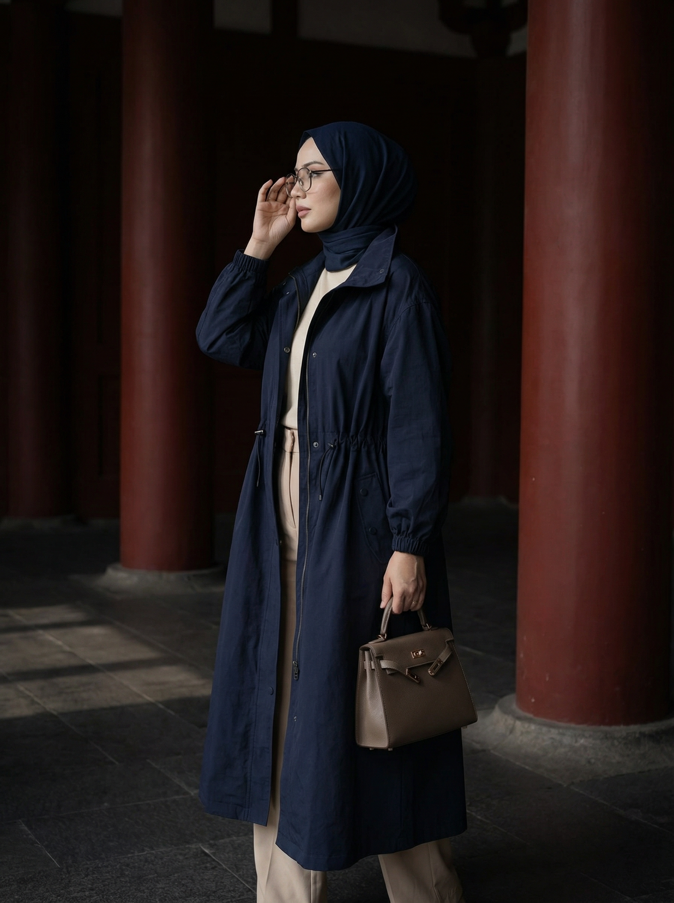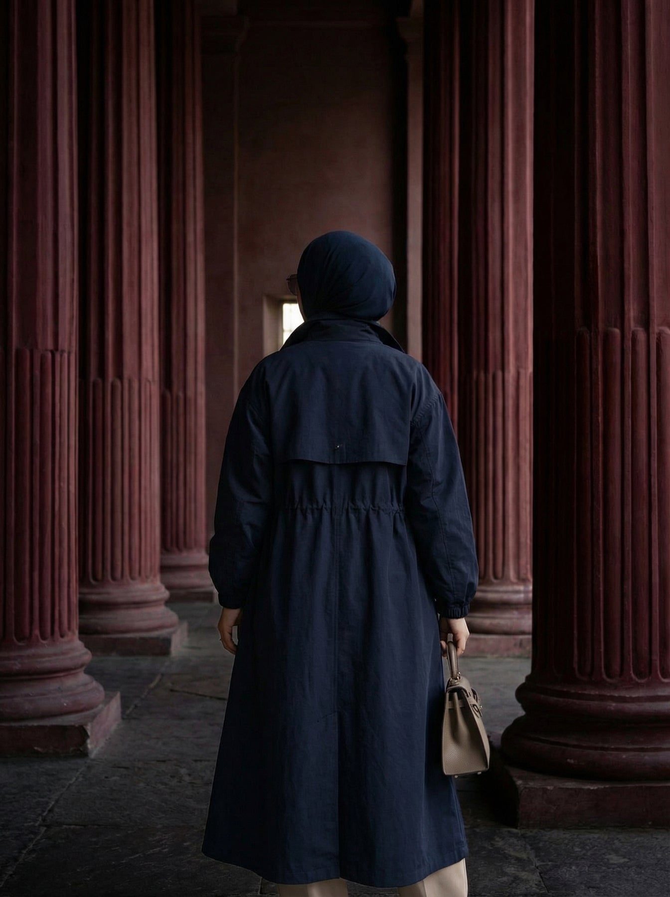 Minimal şıklığı güçlü bir duruşla buluşturan Lacivert Aura Trençkot, şehir hayatının vazgeçilmez parçası olmaya aday.